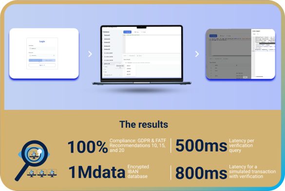 Déployé sur une période de six mois, le système a traité plus de 1 million d’IBAN chiffrés, comparant les environnements en clair et chiffrés pour démontrer une performance équivalente.